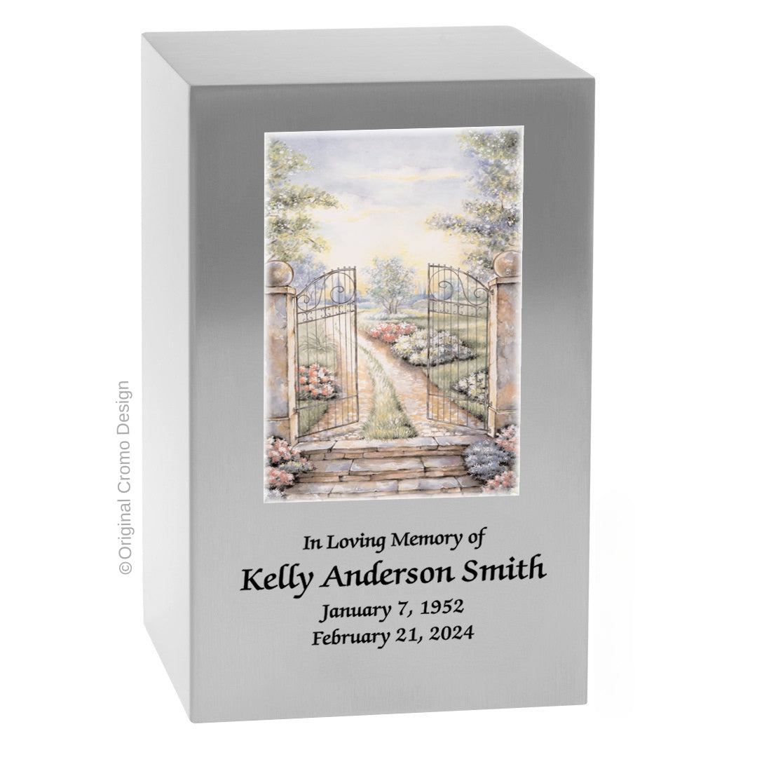 Featuring the the catholic designs from the renowned Cromo NB Studios in Milan, Italy, our urns combine timeless craftsmanship with profound devotion. It includes up to 3 lines for personalization, allowing families to add a heartfelt touch to their loved one’s final resting place.