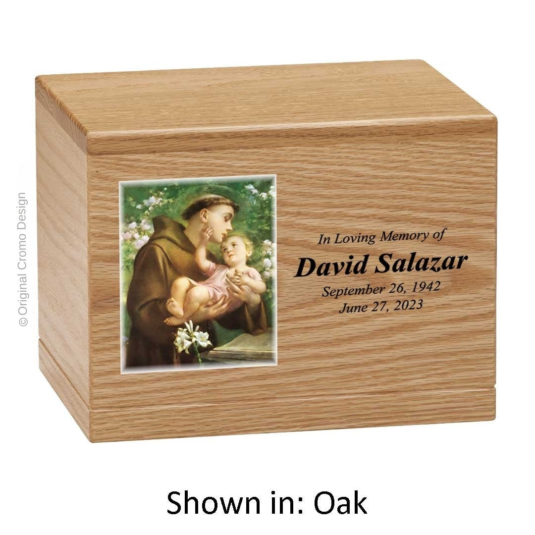 Individually handcrafted from Oak wood with a rich, warm finish, these urns emphasize the natural beauty of the wood while enhancing the texture of the raised image. This unique design creates a truly one-of-a-kind memorial.