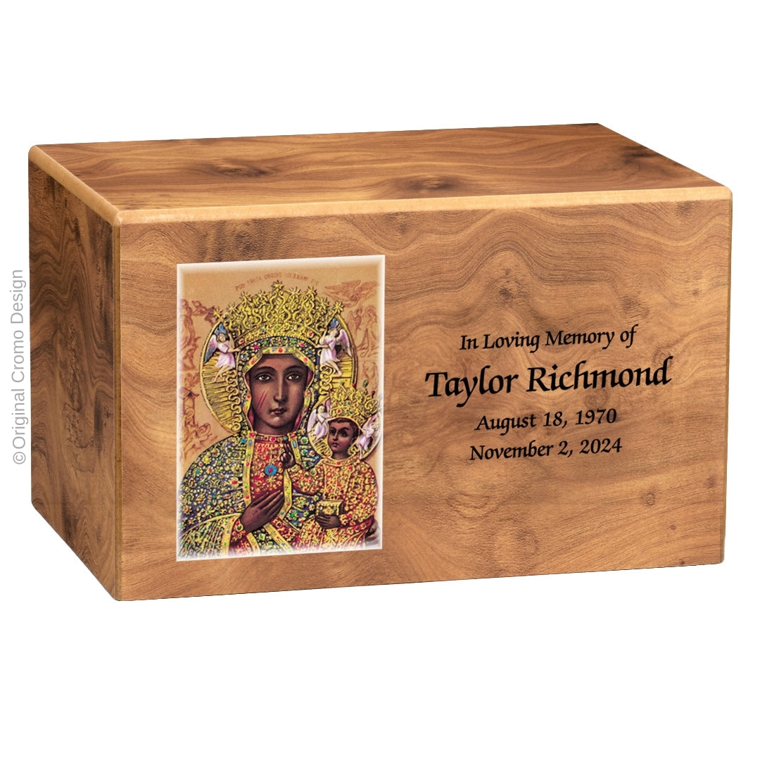 Designed with original Italian artwork from Cromo NB Studios in Milan, Italy, these urns blend classic artistry with deep Catholic devotion. Their sacred imagery resonates with the Catholic community, offering a meaningful reflection of faith and love. It includes up to 3 lines for personalization, allowing families to add a heartfelt touch to their loved one’s final resting place.