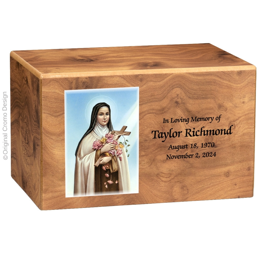 The Cromo MDF Urn is a beautifully crafted memorial, offering a timeless tribute to faith and remembrance. Measuring 5.5 inches in height, 9.1 inches in length, and 6.3 inches in width, this urn is made from durable Medium Density Fiberboard (MDF) and features an advanced UV-cured Texture printing process. This unique technique creates a raised, lifelike image that families can both see and feel, enhancing the beauty of their cherished memorial.