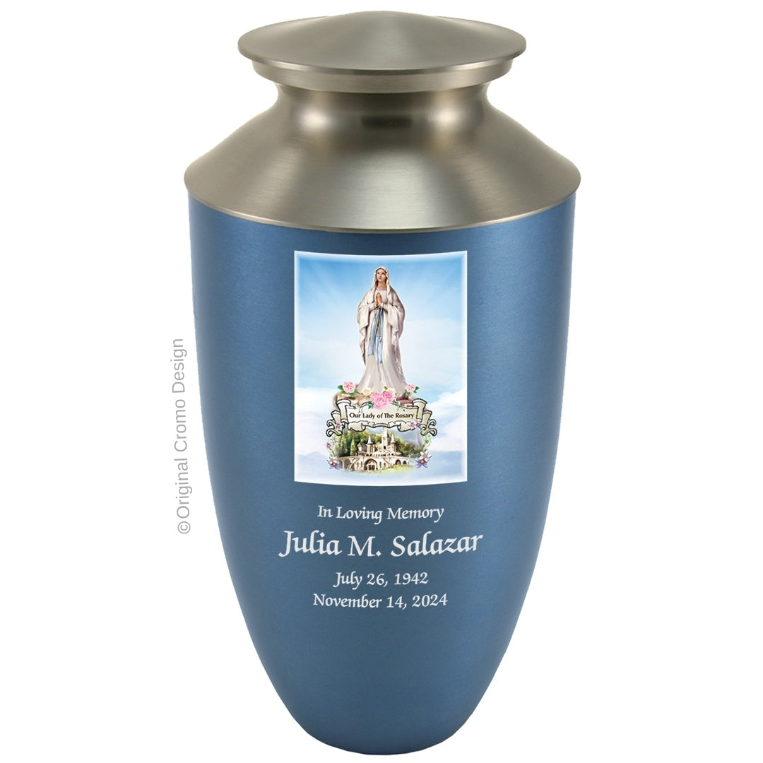 Designed with original Italian artwork from Cromo NB Studios in Milan, Italy, these urns beautifully blend timeless artistry with deep Catholic devotion. Featuring sacred imagery that resonates with the Catholic community, they offer a profound tribute to faith and remembrance. Families can further personalize their tribute with up to three lines of engraving, creating a heartfelt and lasting legacy.